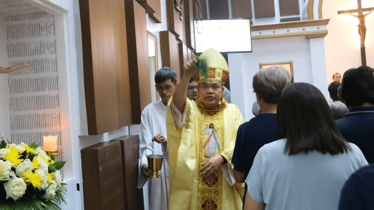 Bishop Elias Ayuban in Thupha piehna vaiguon amapui a, Topa guolzawlnate ngen in tami chapel a koimapou chiel ahi leh hagau mangthaite’n Pasian amu nadingin tuisiengthou the in thupha apie hi.