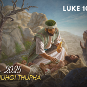 Ama a kilahtou nading hun a hing nai bep in, Jerusalem a pei ding angaituo hi. Khumin amasang ah thu poding mi asawl a Samariate kho lah a aluutthei nadinga na ngaituo dingin tua mun a peite kungah agen hi. Hinanleh Jerusalem apei ding alunggul a mipiten aphalsih uhi. Tualeh tua thu a nuazuite lah a James leh John in atheibep un akungah, “Topa aw, amaute katum dingin van akipat a meikuong kesah ding a ka nget ding uh nahing awi eimah?” achi uhi. Hinanleh ama a kiheia ani un ahousie hi. Tuachin kho dang khat ah apeita uhi.